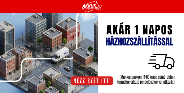 Az Akkuk.hu-n gyors szállítási időket élvezhetsz: Rendeld meg akkumulátoraidat, elemeidet, gombelemeidet és töltőidet, és kapd meg őket gyorsan egy-két munkanapon belül, vagy használd ki a 14 óráig leadott rendelések aznapi feladásának lehetőségét, amennyiben raktáron van. 15000 Ft feletti rendeléseket akár ingyen szállítjuk! Az elégedettséged számunkra az elsődleges, ezért különös figyelmet fordítunk a kiváló ügyfélszolgálatra. Ha kérdésed van vagy személyes tanácsadásra van szükséged, ne habozz, lépj kapcsolatba velünk telefonon, kapcsolatfelvételi űrlapon vagy e-mailben. Örömmel segítünk megtalálni az eszközödhöz legmegfelelőbb akkumulátort. Magazinunkban és GYIK részlegünkben további értékes információkat és tippeket találsz az akkumulátorokkal és elemekkel kapcsolatban.