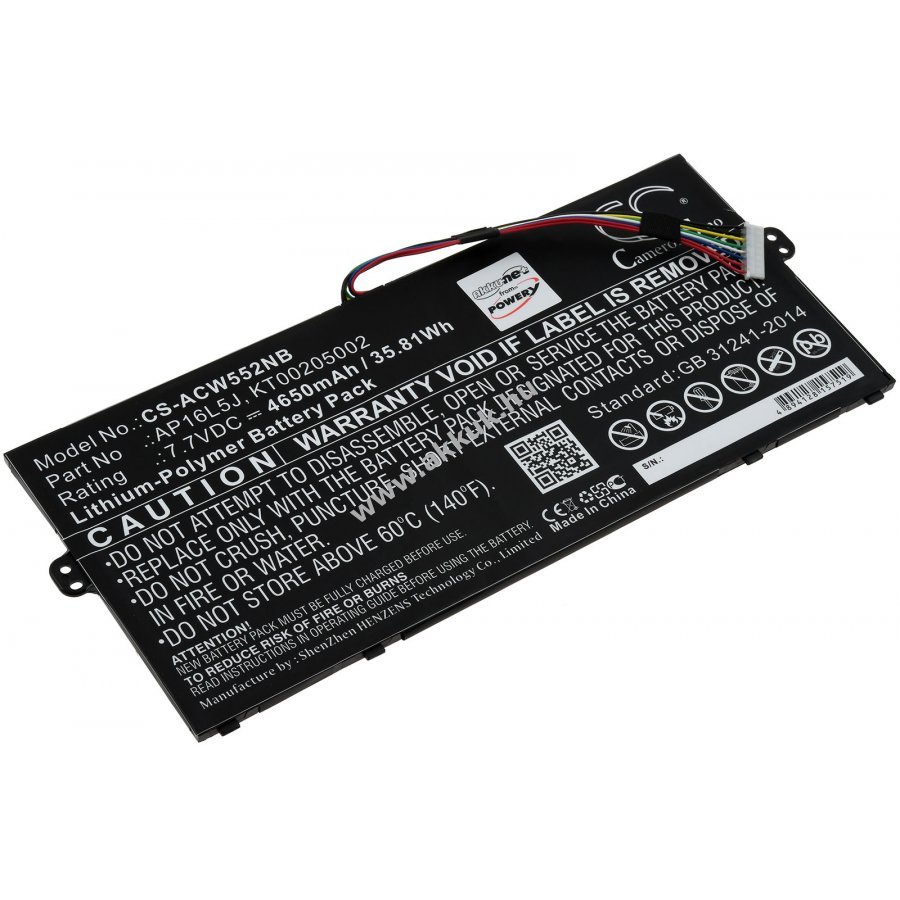 7,7V 4650mAh/35,8Wh Li-Polymer fekete 221,58mm x 94,94mm x 4,00mm 150 gr. Powery 1 év jótállás (további részletek) 4062438248634