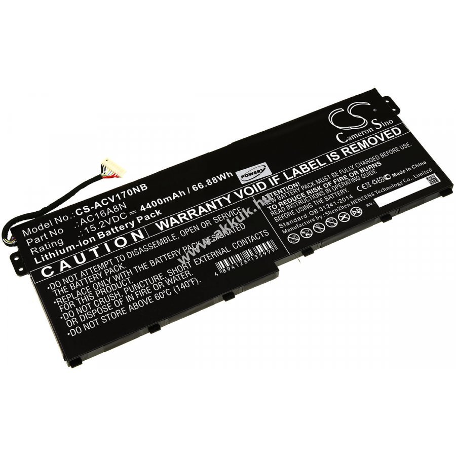 15,2V 4400mAh/66,9Wh Li-Ion fekete 261,00mm x 98,30mm x 7,00mm 334 gr. Powery 1 év jótállás (további részletek) 4062438040788
