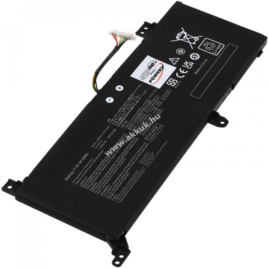 7,6V 4200mAh/32Wh Li-Polymer fekete 190mm x 90mm x 10mm 142 gr. Powery 1 év jótállás (további részletek) 4062438636141
