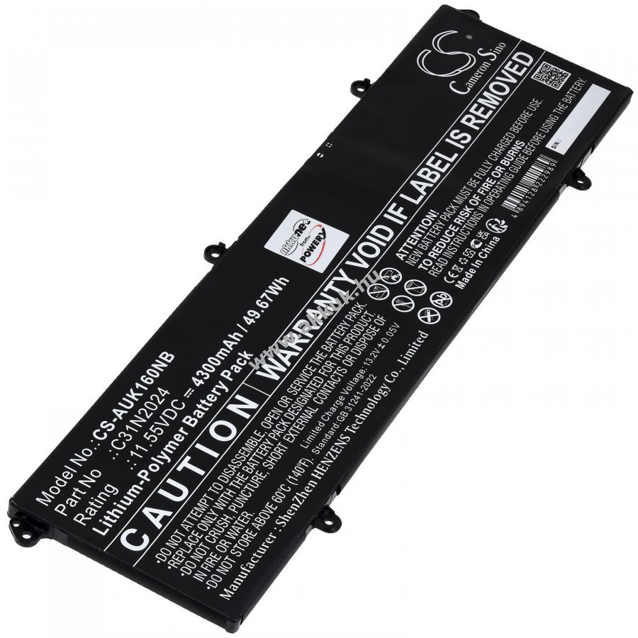 11,55V 4300mAh/50Wh Li-Polymer fekete 286mm x 85mm x 5mm 190 gr. Powery 1 év jótállás (további részletek) 4062438815126