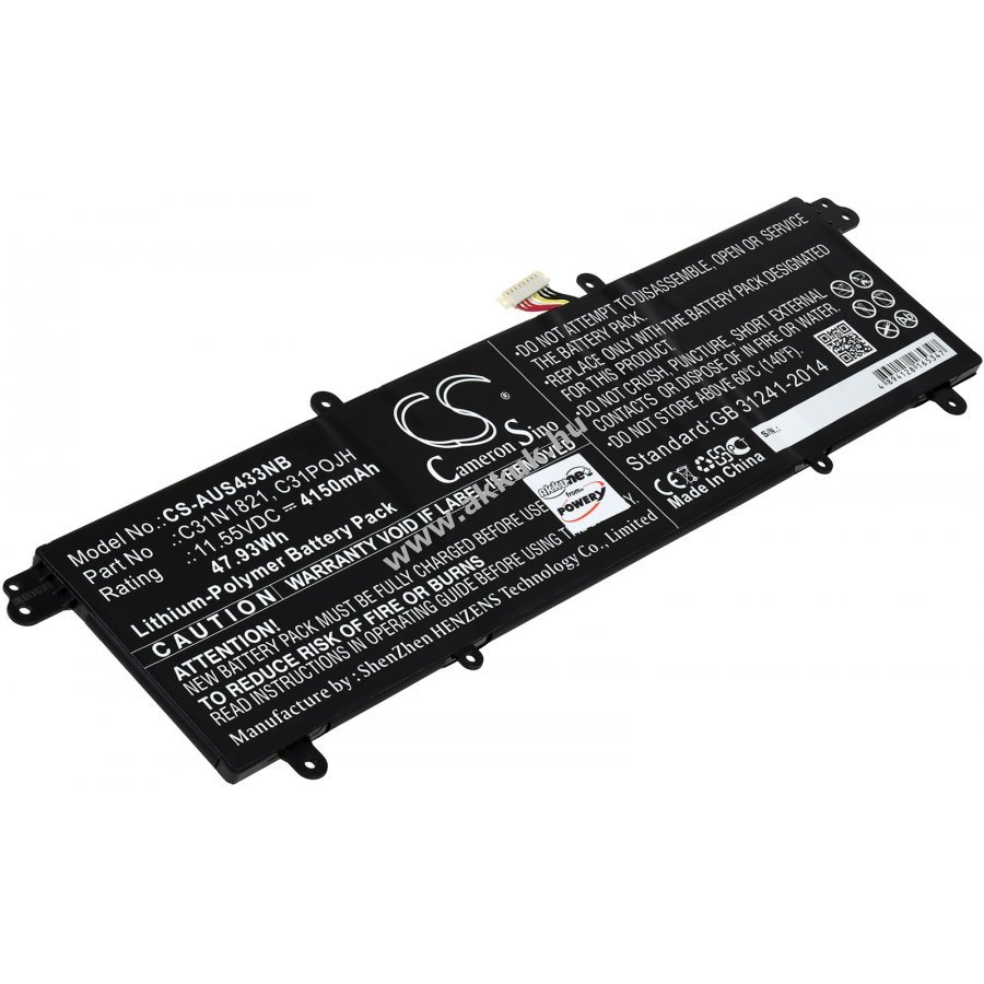 11,55V 4150mAh/47,9Wh Li-Polymer fekete 300mm x 86mm x 5mm 188 gr. Powery 1 év jótállás (további részletek) 4062438378614