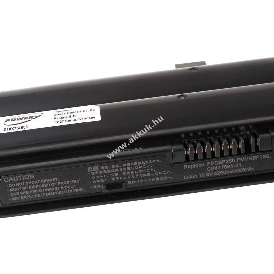 10,8V 5200mAh/56Wh Li-Ion fekete 202,5mm x 51,10mm x 20,4mm 307 gr. LG/SAMSUNG 6 Powery 1 év jótállás (további részletek) 4051363179557
