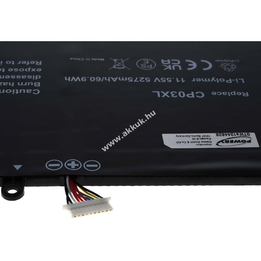 11,55V 5275mAh/60,9Wh Li-Polymer fekete 265mm x 128mm x 4mm 200 gr. Powery 1 év jótállás (további részletek) 4062438139352
