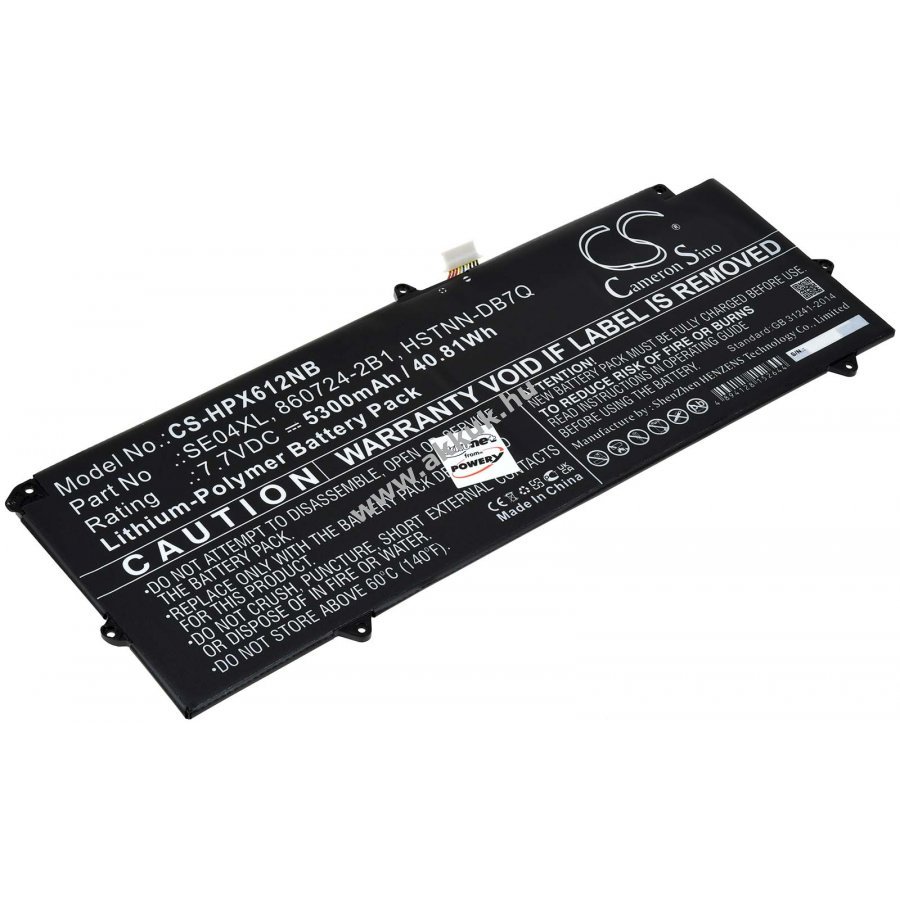 7,7V 5300mAh/40,8Wh Li-Polymer fekete 272mm x 98mm x 4mm 176 gr. Powery 1 év jótállás (további részletek) 4062438521911