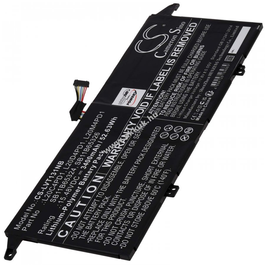 15,48V 3400mAh/52,6Wh Li-Polymer fekete 286mm x 100mm x 5mm 210 gr. Powery 1 év jótállás (további részletek) 4062438716485