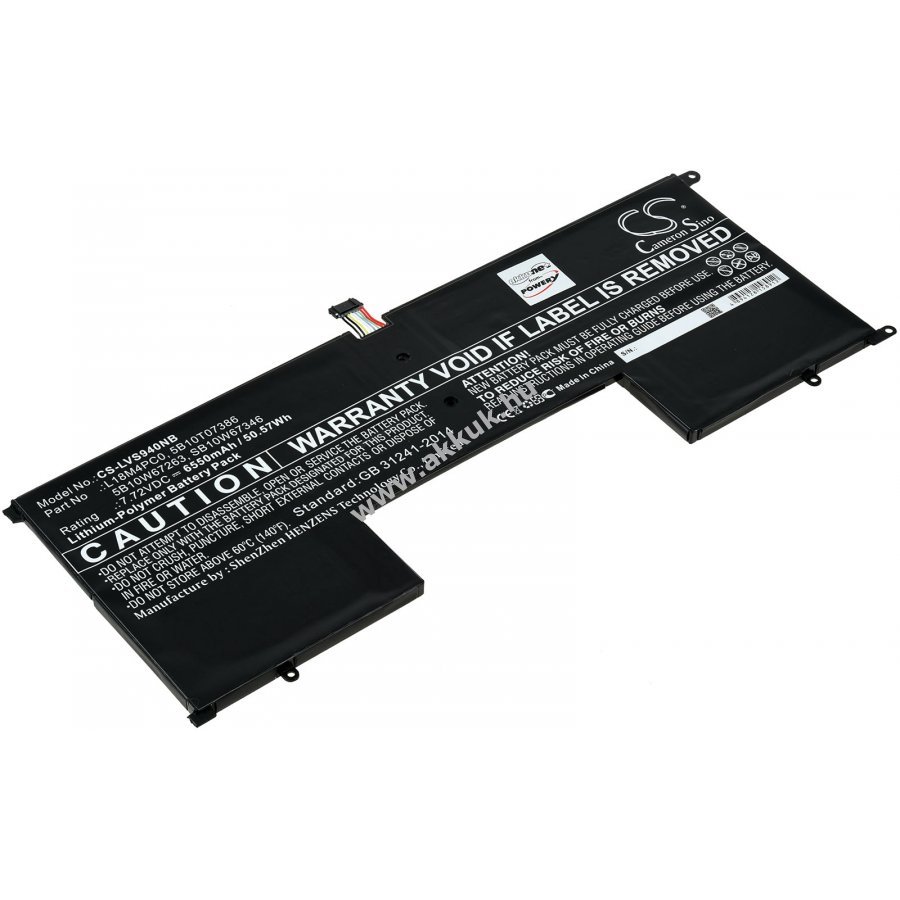 7,72V 6550mAh/50,6Wh Li-Polymer fekete 294,92mm x 110,30mm x 6,00mm 215 gr. Powery 1 év jótállás (további részletek) 4062438332050
