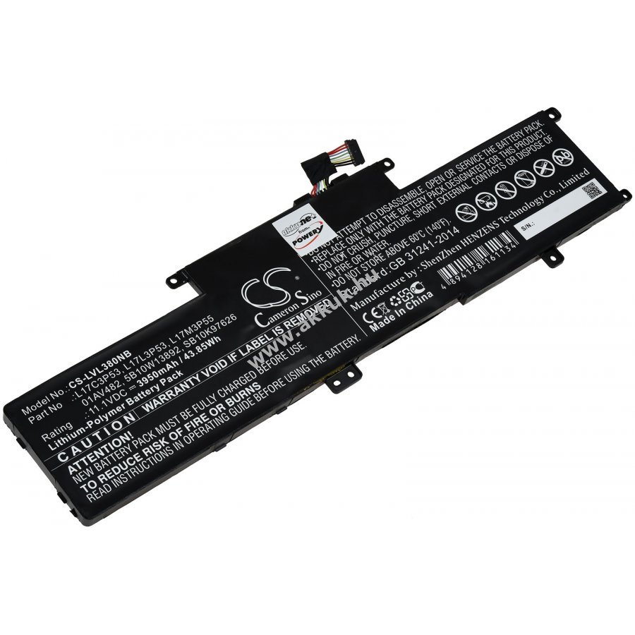 11,1V 3950mAh/44Wh Li-Polymer fekete 291mm x 81mmx 7mm 211 gr. Powery 1 év jótállás (további részletek) 4062438365751