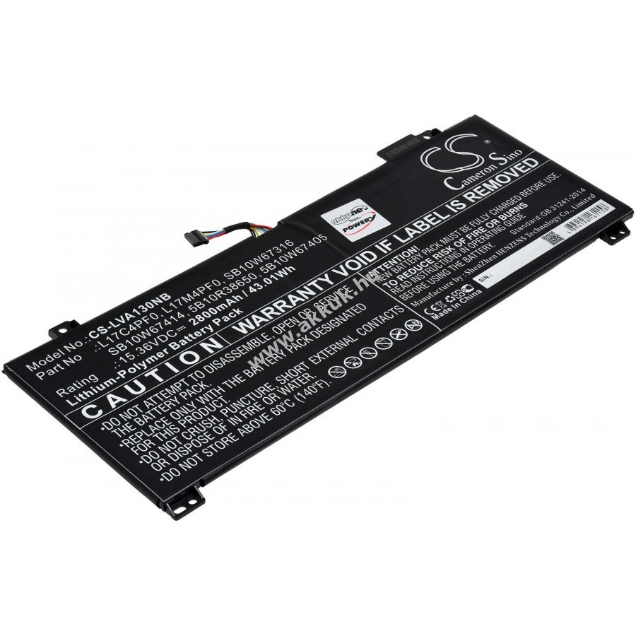 15,36V 2800mAh/43Wh Li-Polymer fekete 243,0mm x 97,8mm x 5,5mm 205 gr. Powery 1 év jótállás (további részletek) 4062438522147