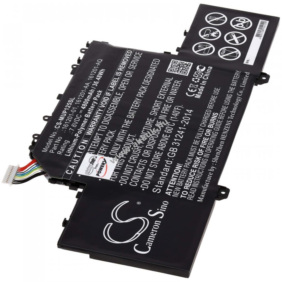 7,6V 4800mAh/36,5Wh Li-Polymer fekete 254mm x 126,5mm x 6mm 185 gr. Powery 1 év jótállás (további részletek) 4062438698262