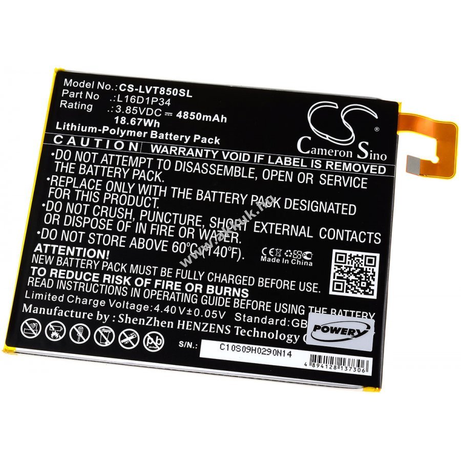3,85V 4850mAh/18,7Wh Li-Polymer fekete 116,34mm x 97,60mm x 2,30mm 69 gr. Powery Szavatosság (további részletek) 4062438039195