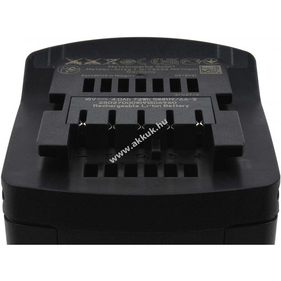 18V 4000mAh/72Wh Li-Ion fekete 85,00mm x 70,00mm x 165,00mm 920 gr. Metabo 1 év jótállás (további részletek) 4051363978280