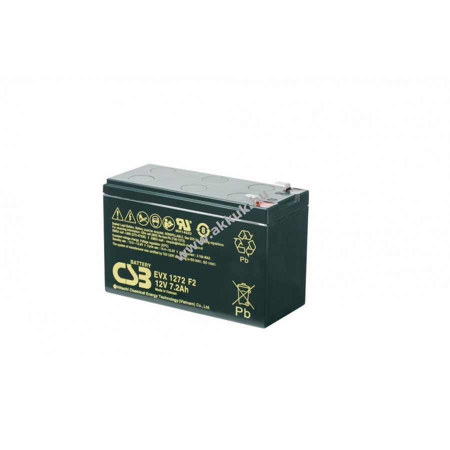 12V 7,2Ah VRLA fekete 151 x 65 x 100mm 2600 gr. CSB 1 év jótállás (további részletek)