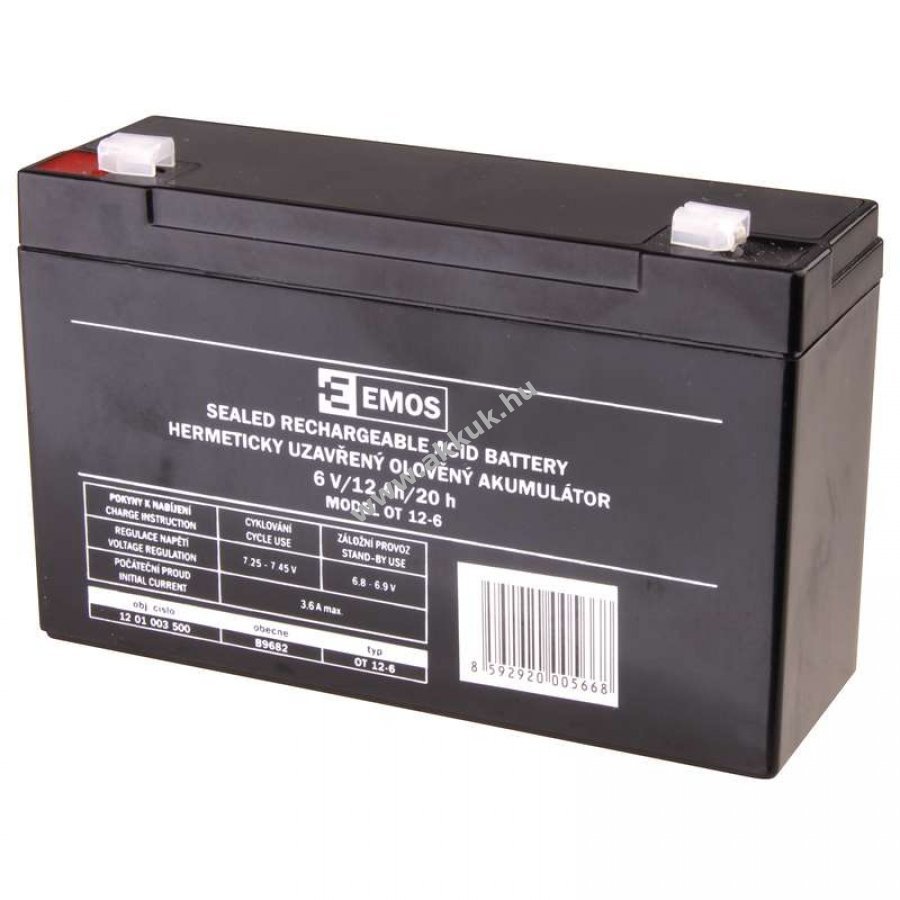 6V 12Ah SLA fekete 151mm x 51mm x 94mm 1903 gr. EMOS Szavatosság (további részletek) 8592920005668