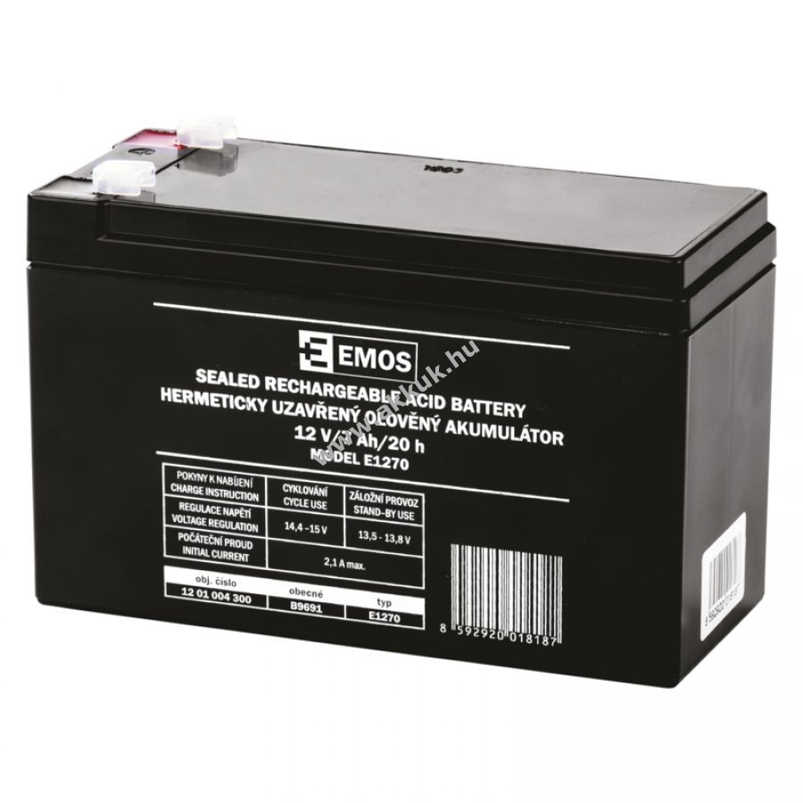 12V 7000mAh SLA fekete 151 x 65 x 94 mm 2050 gr. EMOS 1 év jótállás (további részletek) 8592920018187