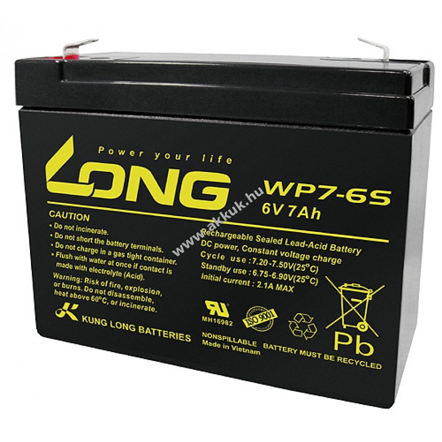 6V 7Ah SLA fekete 116mm x 50mm x 92mm 1450 gr. KungLong Szavatosság (további részletek)
