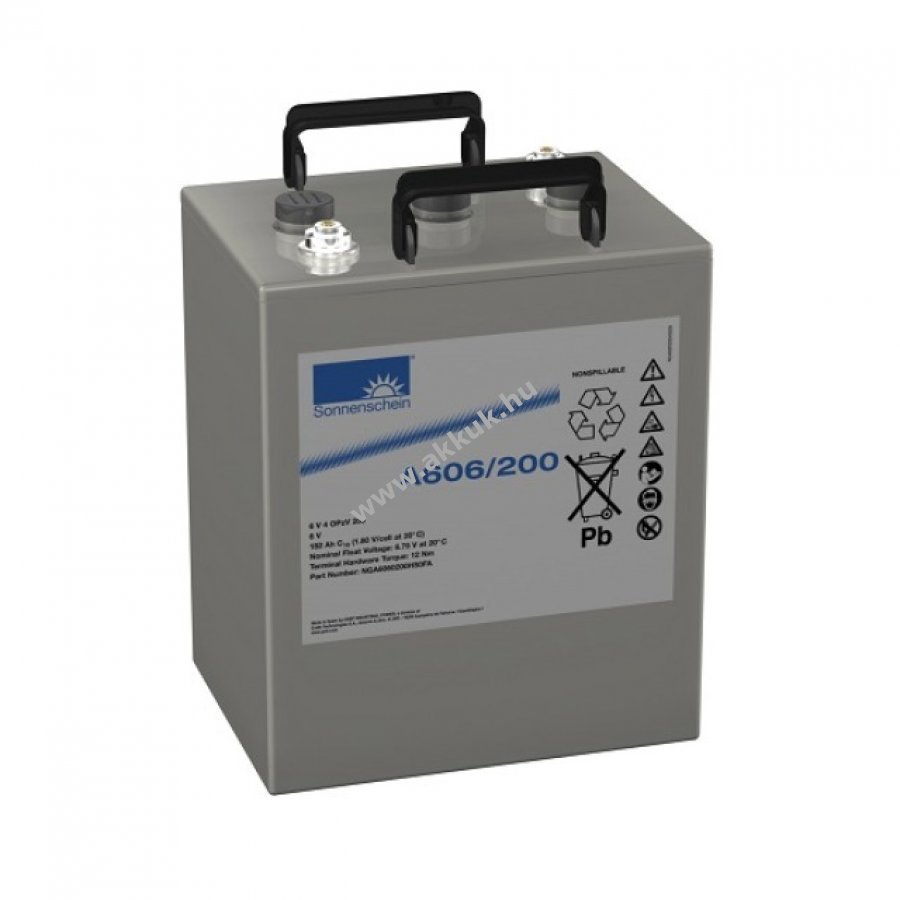 6V 200Ah SLA szürke 272mm x 206mm x 323mm 45700 gr. Sonnenschein 3 év jótállás (további részletek)