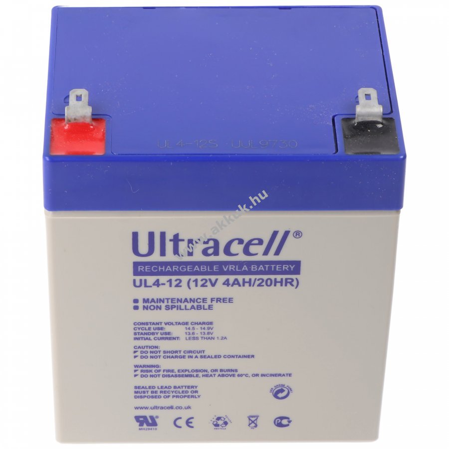 12V 4Ah SLA 90mm x 70mm x 101mm 1400 gr. Ultracell Szavatosság (további részletek)