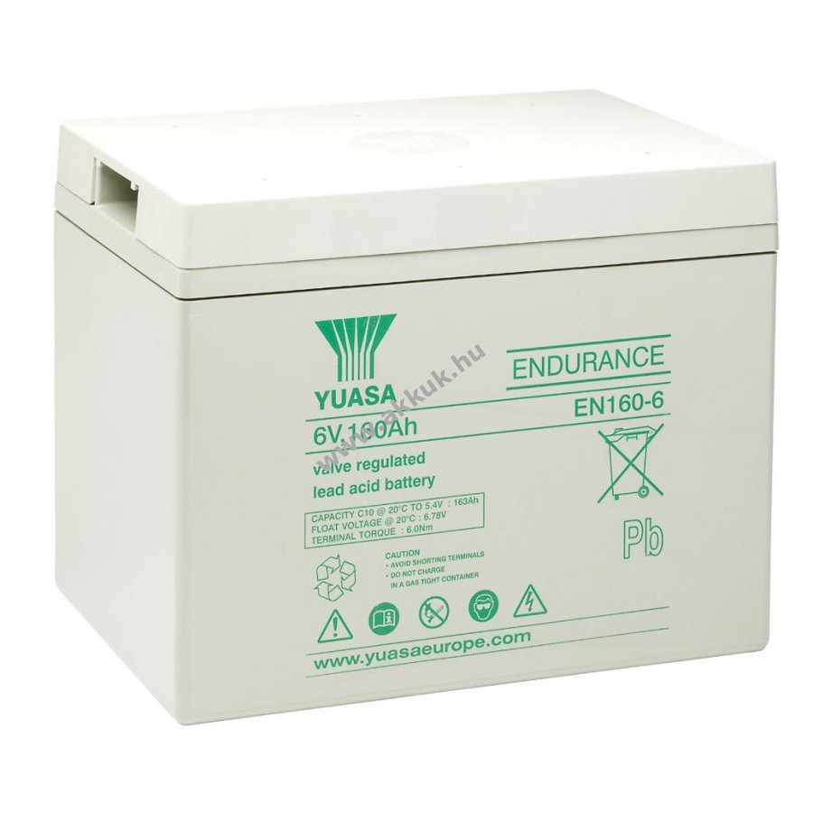 6V 160Ah SLA 305mm x 210mm x 240mm 35000 gr. YUASA 2 év jótállás (további részletek)