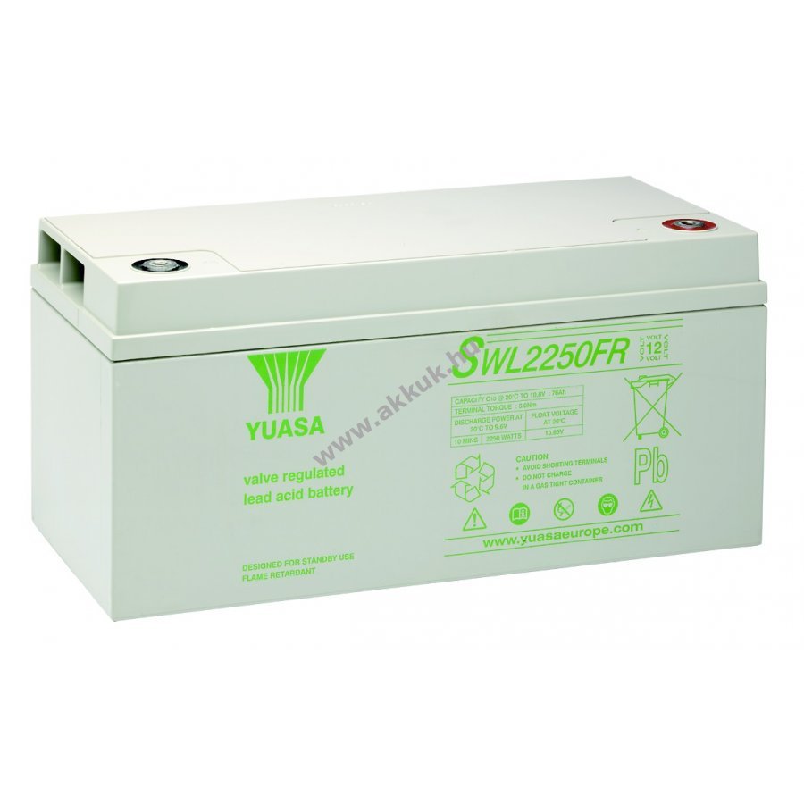 12V 76Ah SLA 380mm x 166mm x 185mm 25000 gr. YUASA 2 év jótállás (további részletek)