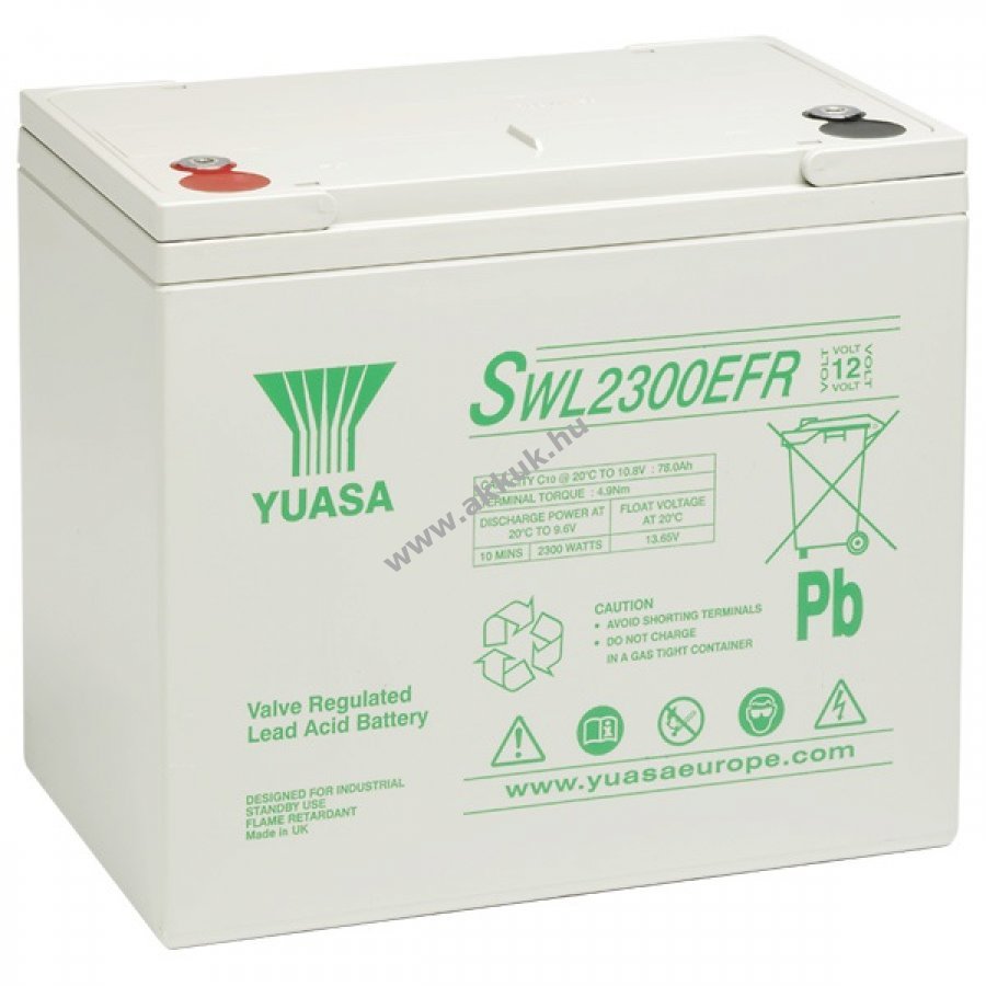 12V 78Ah SLA 261mm x 168mm x 225mm 27500 gr. YUASA 2 év jótállás (további részletek)