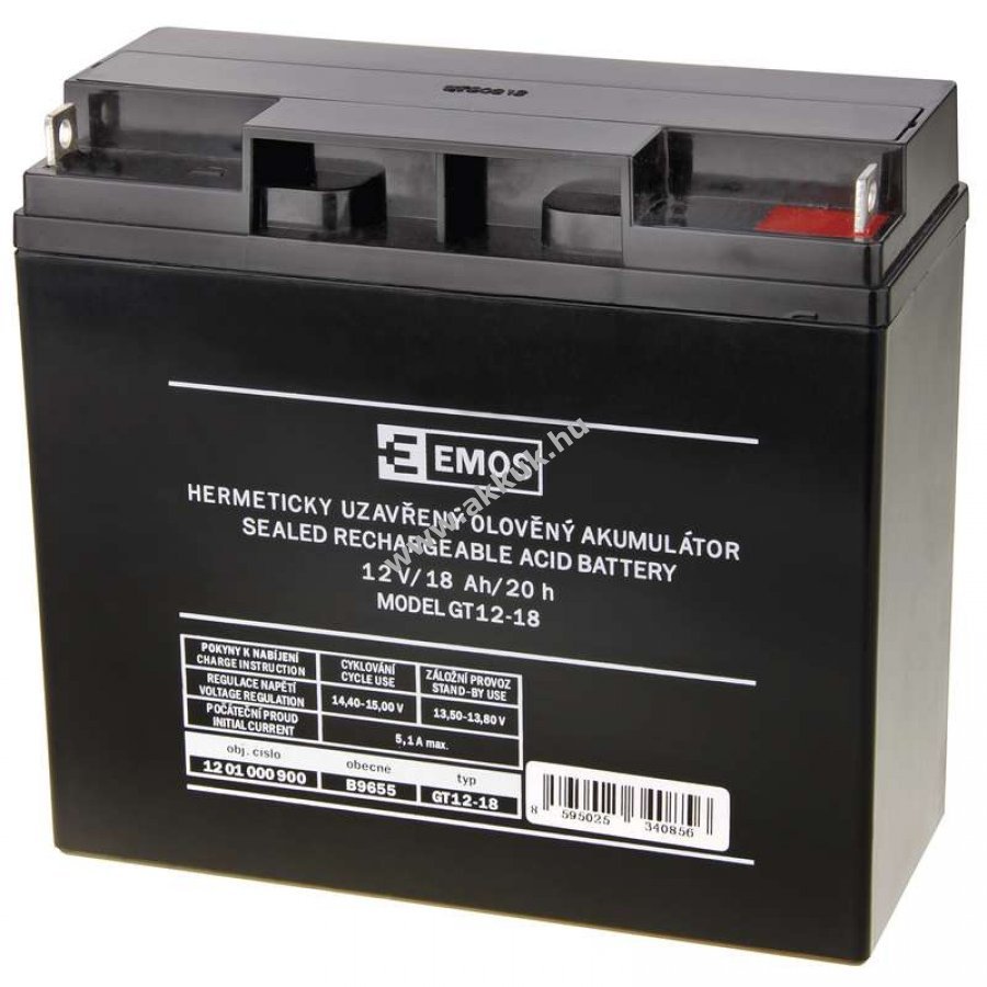 12V 18Ah SLA fekete 181mm x 76mm x 167mm 49600 gr. EMOS 2 év jótállás (további részletek)