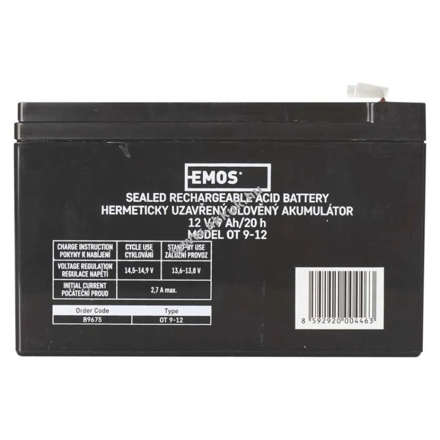 12V 9Ah SLA fekete 151mm x 65mm x 94mm 10980 gr. EMOS 1 év jótállás (további részletek) 8592920004463