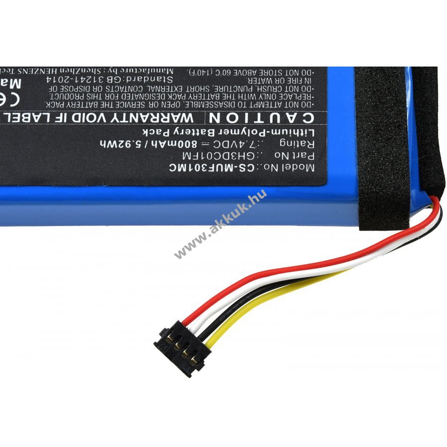 7,4V 800mAh/6Wh Li-Polymer kék 75mm x 21mm x 12mm 32 gr. Powery Szavatosság (további részletek) 4062438410741
