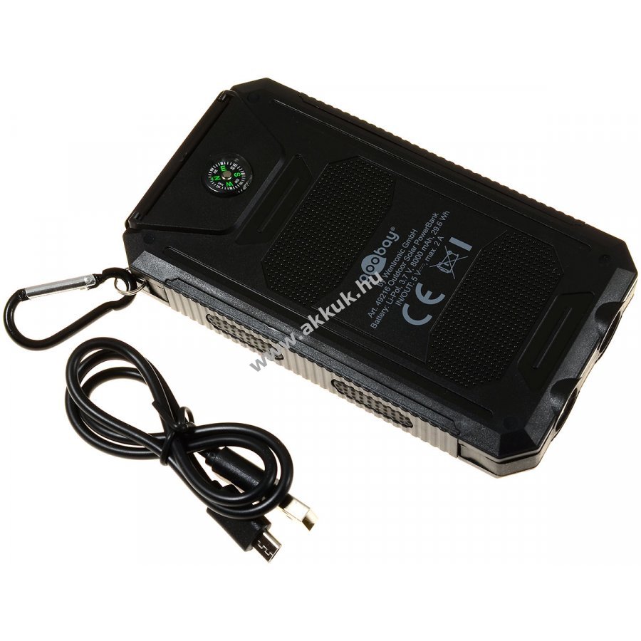 goobay sport powerbank külső akku napelemes szolár töltő zseblámpa, elemlámpafunkcióval 8000mAh