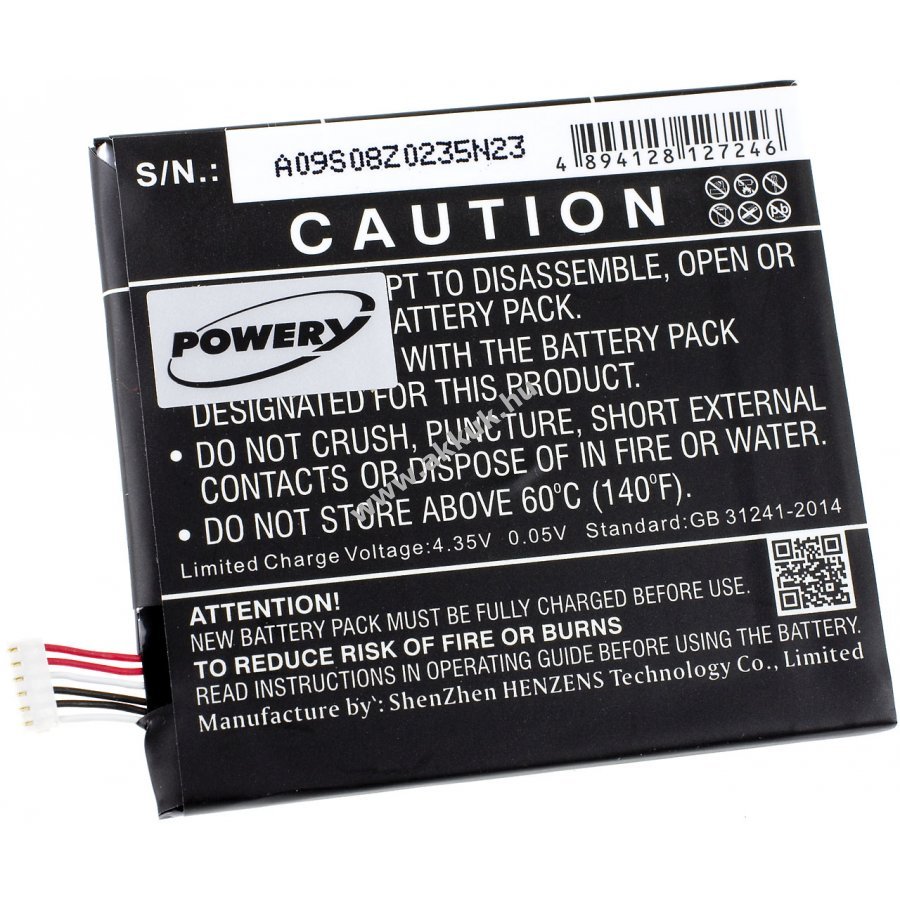 3,8V 2000mAh/7,6Wh Li-Polymer fekete 62,10mm x 57,60mm x 3,50mm 30 gr. Powery Szavatosság (további részletek) 4051363957520