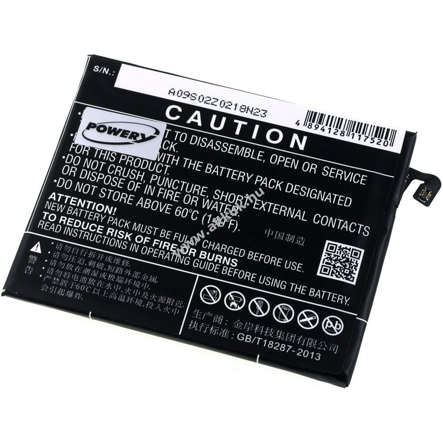 3,9V 4000mAh/15,6Wh Li-Polymer fekete 80,40mm x 64,30mm x 4,50mm 54 gr. Powery Szavatosság (további részletek) 4051363915636