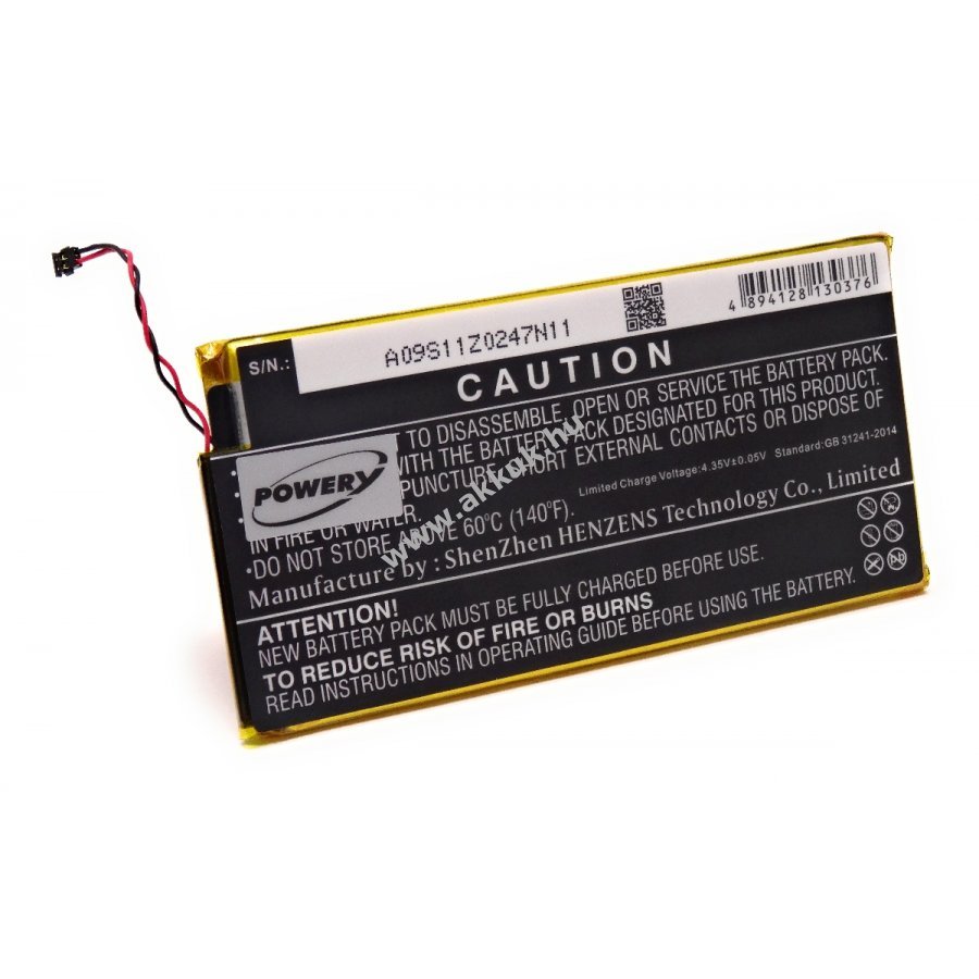 3,8V 2800mAh/10,6Wh Li-Polymer fekete 97,14mm x 48,30mm x 3,68mm 44 gr. Powery Szavatosság (további részletek) 4051363975418