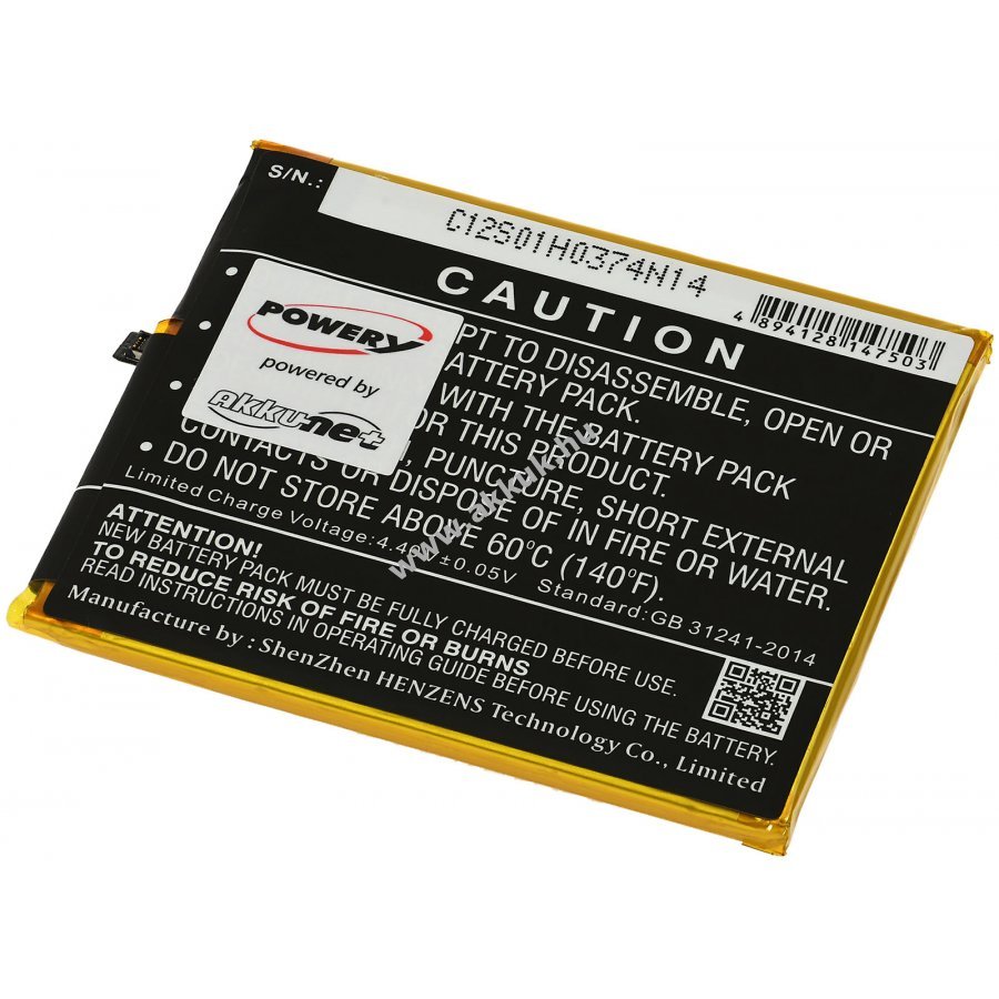 3,85V 3200mAh/12,3Wh Li-Polymer fekete 71,65mm x 61,00mm x 4,56mm 48 gr. Powery Szavatosság (további részletek) 4062438193675