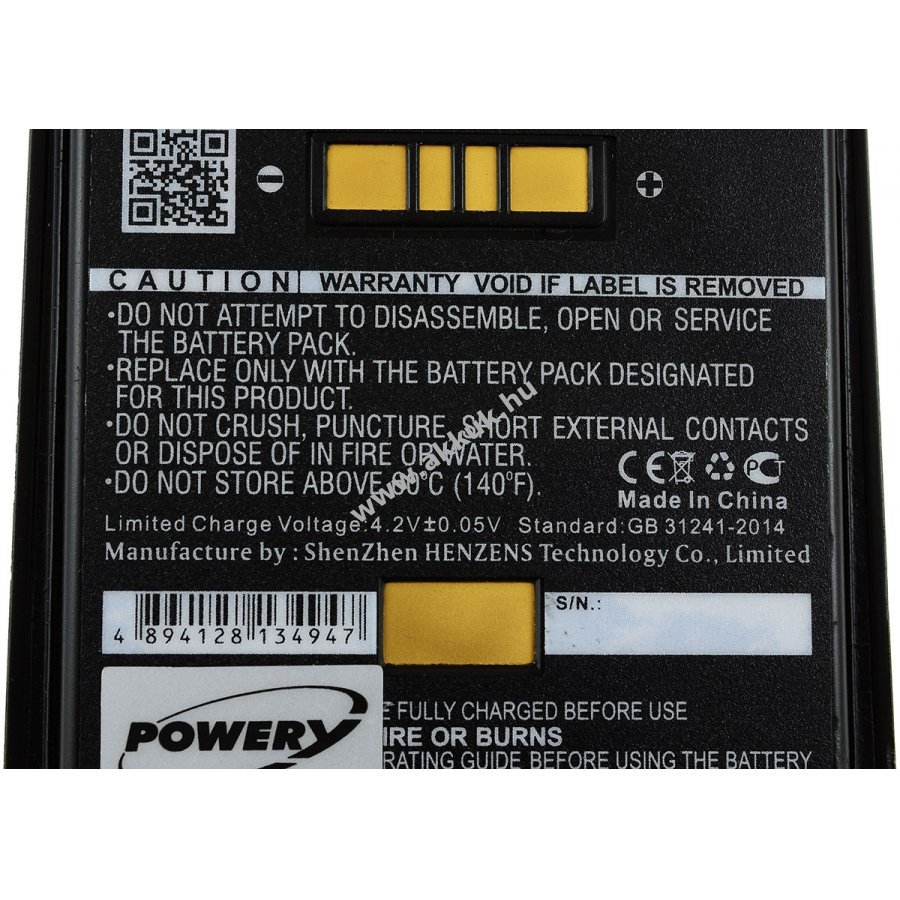 Ez egy Európai Uniós előírás. A futárszolgálatok számára jelölnünk kell, hogy Lithium-Ion akkumulátort szállítanak-e készülékkel vagy anélkül, és a feladó (UN3480 / UN3481) telefonszámát is fel kell tüntetni.