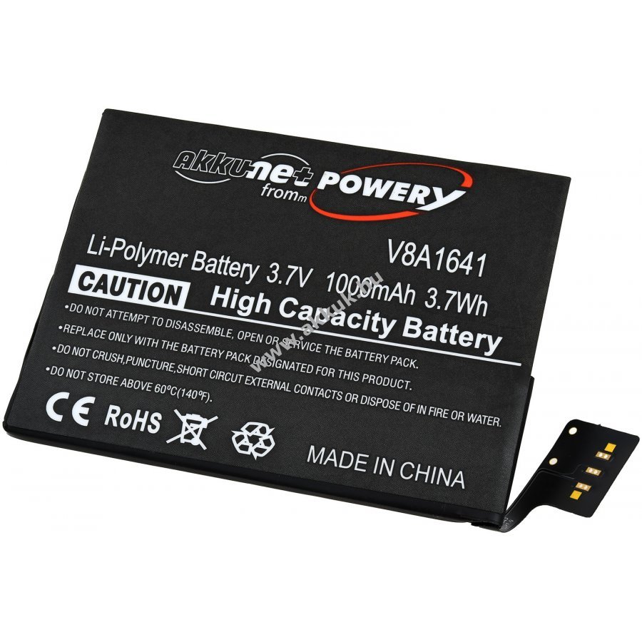 3,7V 1000mAh/3,7Wh Li-Polymer fekete 66,10mm x 49,80mm x 2,30mm 18 gr. Powery Szavatosság (további részletek) 4062438394089