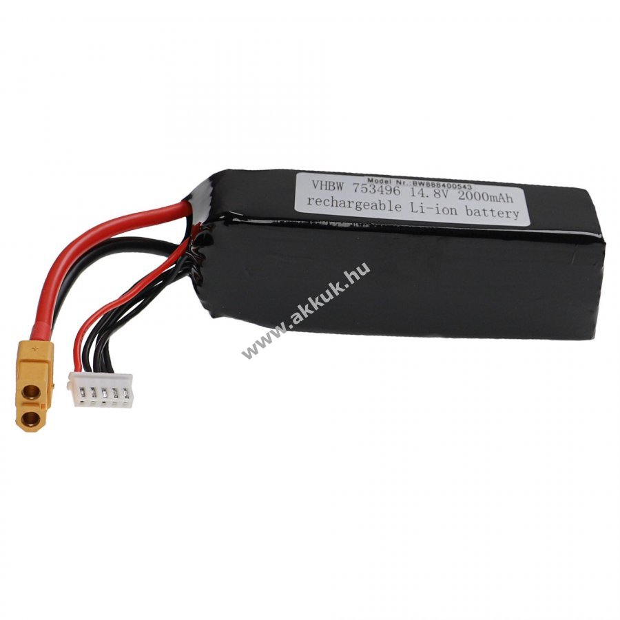 14.8V 2000mAh Li-Po fekete 105mm x 36mm x 32mm 245 gr. VHBW 1 év jótállás (további részletek)