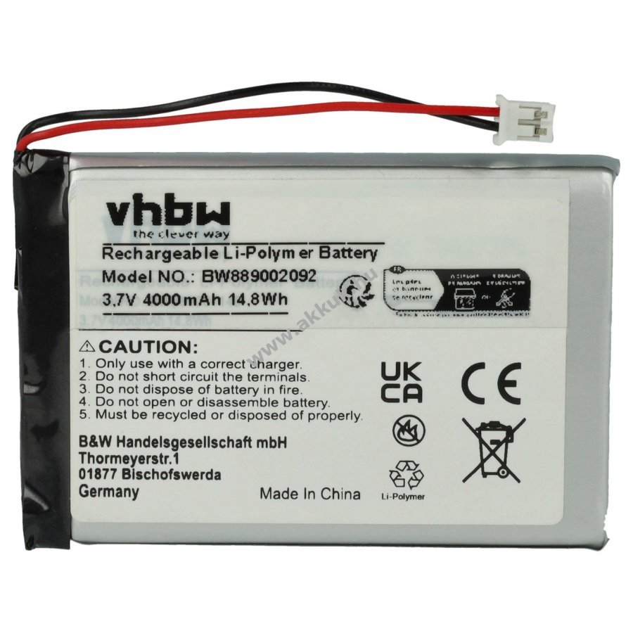 Új áruk, eredeti csomagolás Minőségi vhbw termékek. A kompatibilitás biztosítása érdekében kérjük, győződjön meg arról, hogy az eszköz modellje és az eredeti akkumulátor neve is szerepel az ajánlatban!