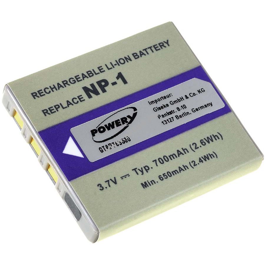 3,7V 700mAh/2,6Wh Li-Ion szürke 40,1mm x 35,8mm x 6,2mm 17 gr. Powery Szavatosság (további részletek) 4051363035877