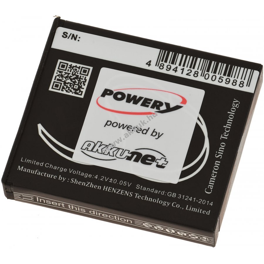 3,6V 1050mAh/3,8Wh Li-Ion fekete 40,4mm x 36,5mm x 7,4mm 18 gr. Powery Szavatosság (további részletek) 4050411167775