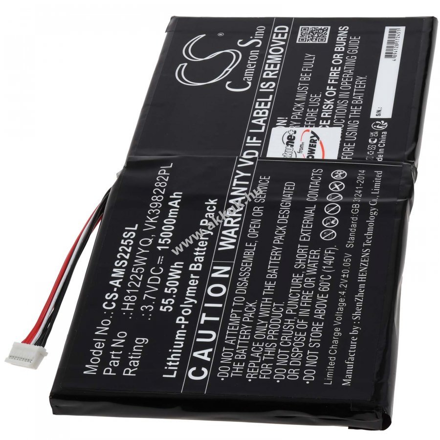 3,7V 15000mAh/55Wh Li-Polymer fekete 181mm x 83mm x 8mm 226 gr. Powery 1 év jótállás (további részletek) 4062438617096