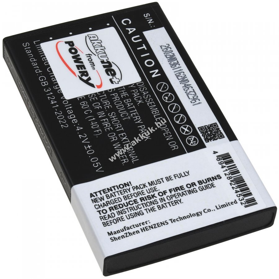 3,7V 3600mAh/13Wh Li-Ion fekete 72mm x 42mm x 8mm 160 gr. Powery 1 év jótállás (további részletek)
