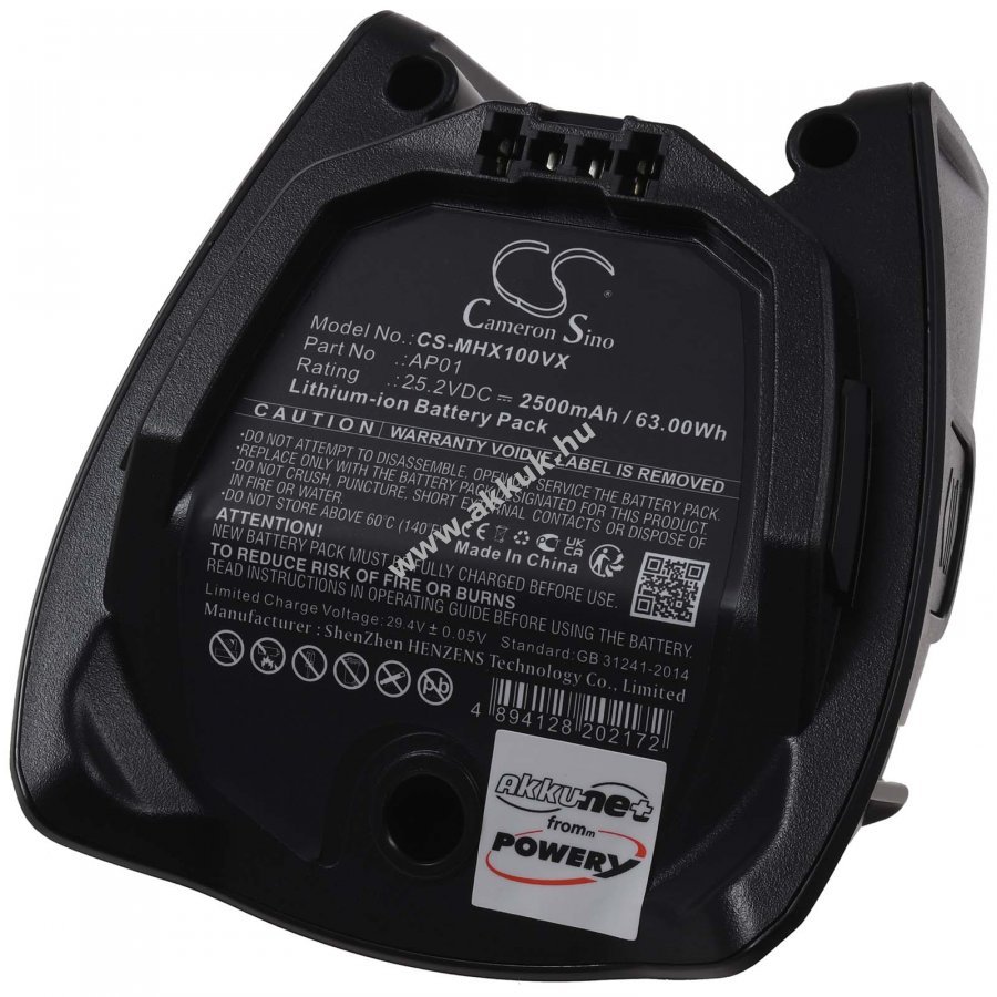 25,2V 2500mAh/63Wh Li-Ion fekete 126mm x 102mm x 70mm 526 gr. Powery 1 év jótállás (további részletek) 4062438705991