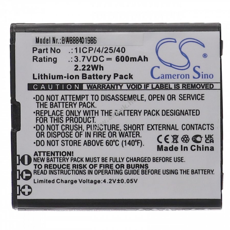 3.7V 600mAh Li-Ion fekete 17 gr. VHBW Szavatosság (további részletek)