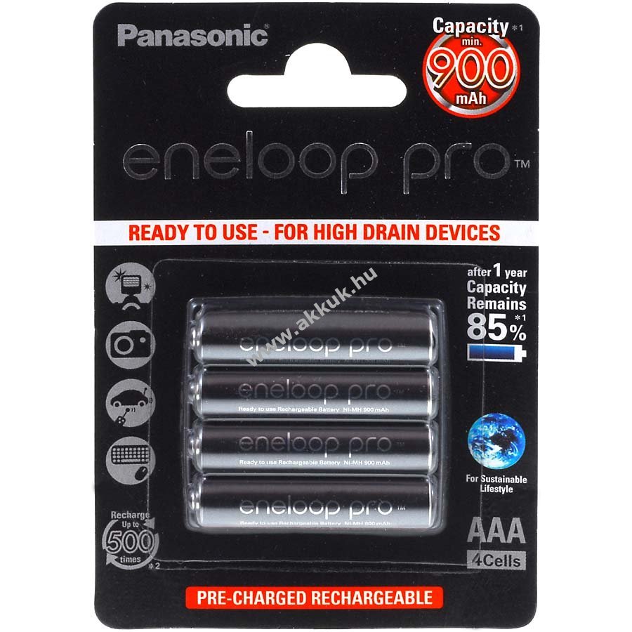 Műszaki adatok: Panasonic eneloop Pro BK-4HCCE/4BE Típus: NiMH Formátum: AAA / Micro / R3 típus. Kapacitás: 950mAh Minimális kapacitás: 900mAh Feszültség: 1,2V Töltési ciklusok: 500-ig Önkisülés: 1 év után még kb. 85% Szállítási terjedelem: 4 db buborékcsomagolás Figyelem ez egy gépi fordítás, amennyiben hibát talál kérjük jelezze felénk.