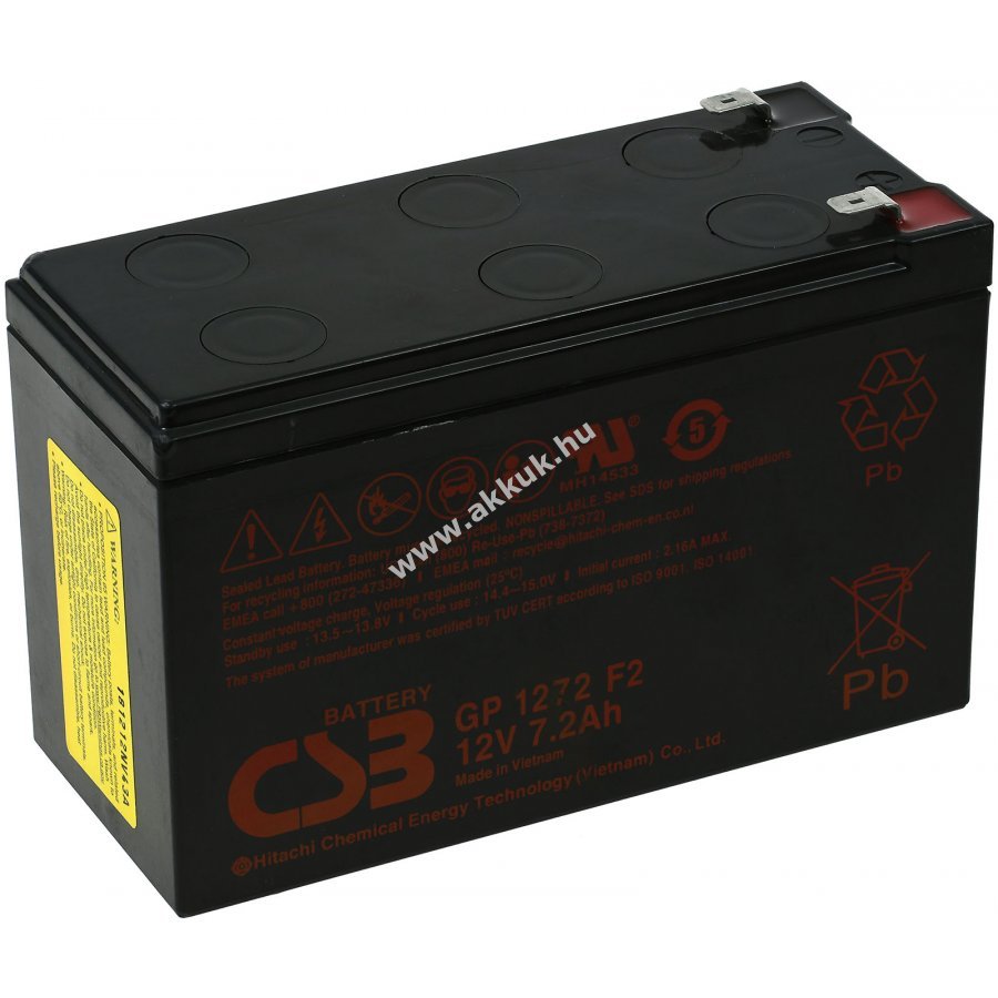 12V 7,2Ah Lead-Acid fekete 151mm x 94mm x 65mm 2540 gr. CSB 1 év jótállás (további részletek) 4062438128875