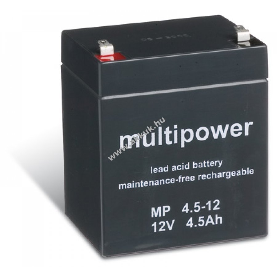 12V 4,5Ah/54Wh SLA fekete 90mm x 70mm x 107mm 1680 gr. MULTIPOWER Szavatosság (további részletek) 4051363443429