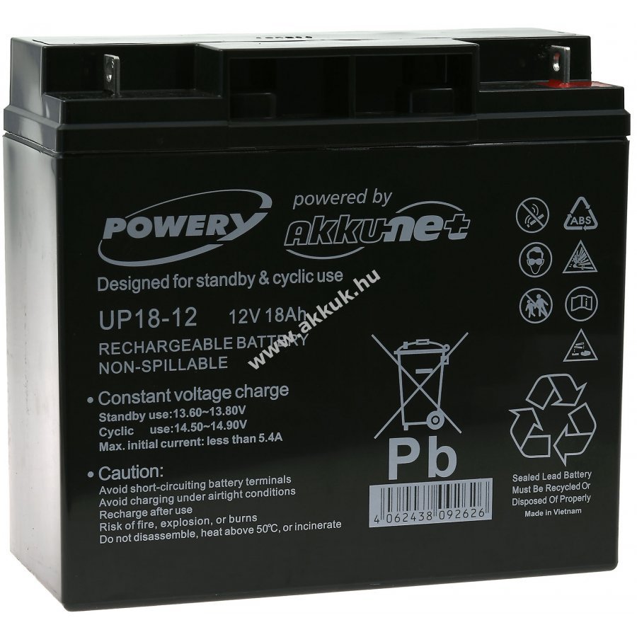 12V 18Ah/216Wh SLA fekete 181mm x 76mm x 167mm 21920 gr. POWERY 1 év jótállás (további részletek) 4051363600303