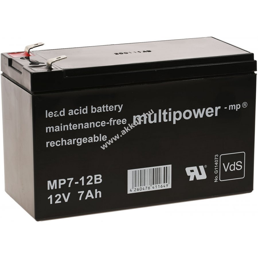 12V 7Ah SLA fekete 151mm x 65mm x 102mm 2200 gr. MULTIPOWER 1 év jótállás (további részletek) 4062438569128