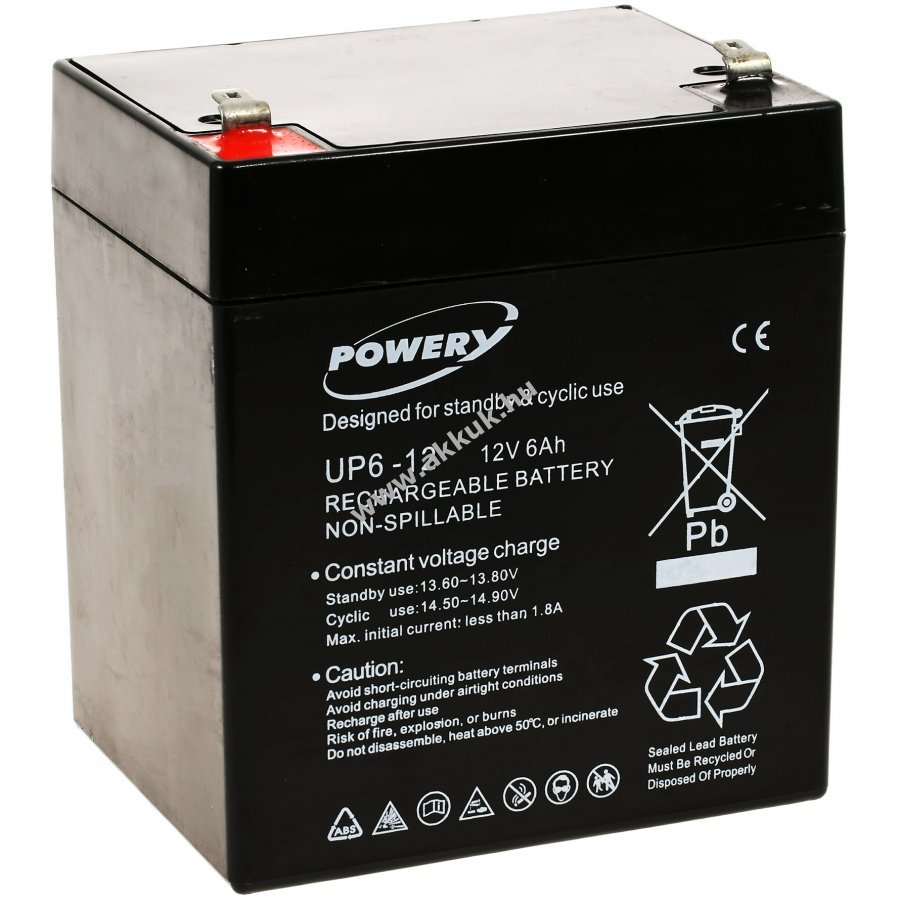 12V 6Ah/72Wh Lead-Acid fekete 90mm x 70mm x 107mm 1600 gr. Powery Szavatosság (további részletek) 4062438208997