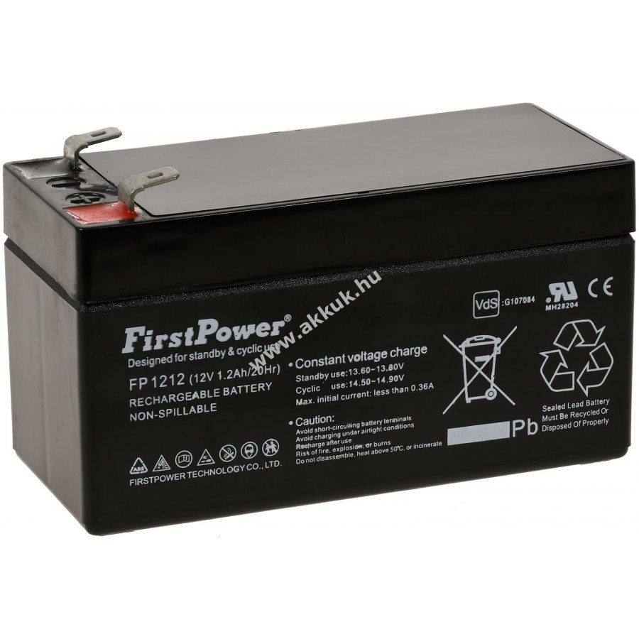 12V 1200mAh/14,4Wh SLA fekete 97,00mm x 43,00mm x 59,00mm 600 gr. FirstPower Szavatosság (további részletek) 4062438208621